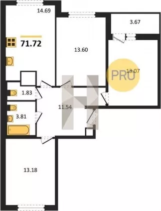 Название ЖК ЯСНО.Янино Площадь, кв.м. 71.72 Жилая площадь 39.85 Площадь кухни, кв.м. 14.69 Комнат в квартире 3 Этаж 4 Этажность 8 Материал стен Экспериментальные материалы Ремонт Косметический