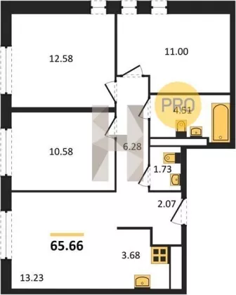 Квартира: 3 к 65,66 кв.м., 2 этаж в комплексе Новые Лаврики, 1 очередь, корп.1.1, сдача: 2кв. , этажей: 12, адрес Мурино г., , Застройщик: Группа Самолет.