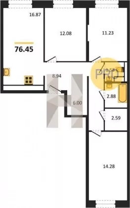 Название ЖК Новые Лаврики Площадь, кв.м. 76.45 Жилая площадь 37.59 Площадь кухни, кв.м. 16.87 Комнат в квартире 3 Этаж 12 Этажность 12 Материал стен Кирпич Ремонт Косметический