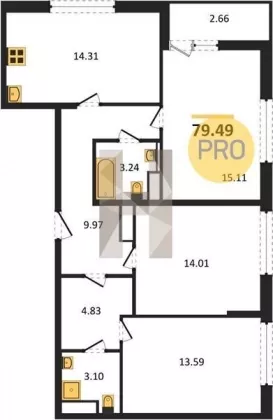 Квартира: 3 к 79,49 кв.м., 10 этаж в комплексе Академик, 1 очередь, корп.1.1, сдача: 4кв. , этажей: 12, адрес Пискаревский пр., , Застройщик: РосСтройИнвест.