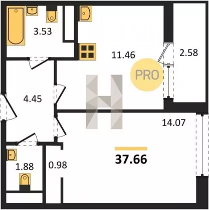 Название ЖК Академик Площадь, кв.м. 37.66 Жилая площадь 14.07 Площадь кухни, кв.м. 11.46 Комнат в квартире 1 Этаж 6 Этажность 12 Материал стен Монолитный Ремонт Предчистовая