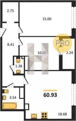 Название ЖК Академик Площадь, кв.м. 60.93 Жилая площадь 25.05 Площадь кухни, кв.м. 18.68 Комнат в квартире 2 Этаж 11 Этажность 12 Материал стен Монолитный Ремонт Предчистовая