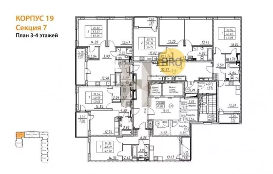 Квартира: 2 к 60,26 кв.м., 3 этаж в комплексе Энфилд, 1 очередь, корп.19, сдача: 4кв. , этажей: 12, адрес Бугры п., , Застройщик: Arsenal.