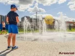 Большая пешеходная зона для прогулок с фонтанами и скамейками.