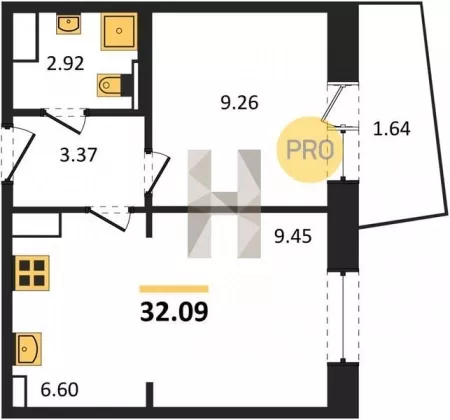 Квартира: 1 к 32,09 кв.м., 7 этаж в комплексе Курортный квартал, 1 очередь, корп.Уч.581, сдача: 3кв. , этажей: 9, адрес Песочный п., , Застройщик: Группа Самолет.