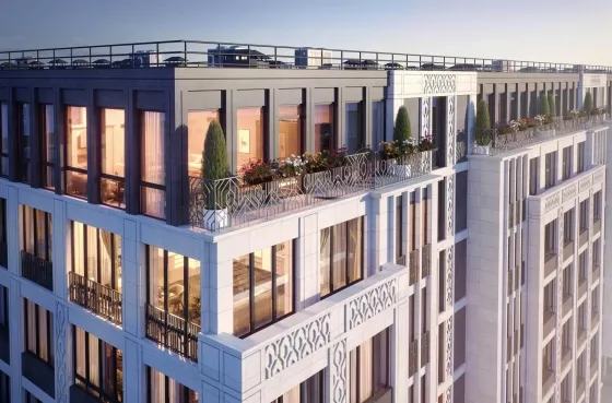 Жилой комплекс состоит из трех восьмиэтажных монолитных корпусов с улучшенной тепло- и звукоизоляцией. Дома в современном классическом стиле станут продолжением микрорайона Петровского острова. Фасад зданий будет украшен большими панорамными окнами и облицовкой в серых тонах с орнаментом. На крыше двух домов запланировано обустройства места для отдыха.